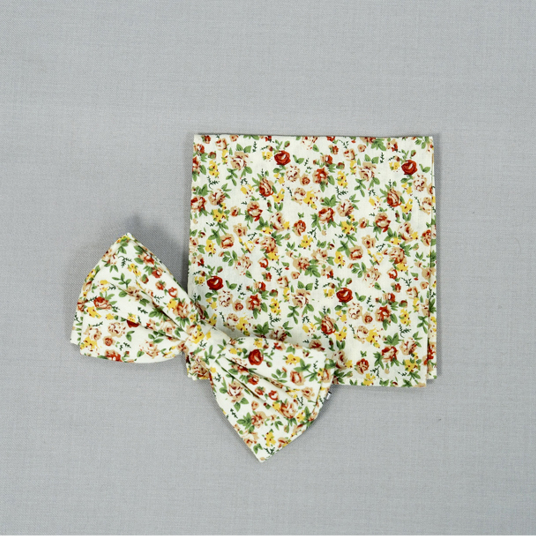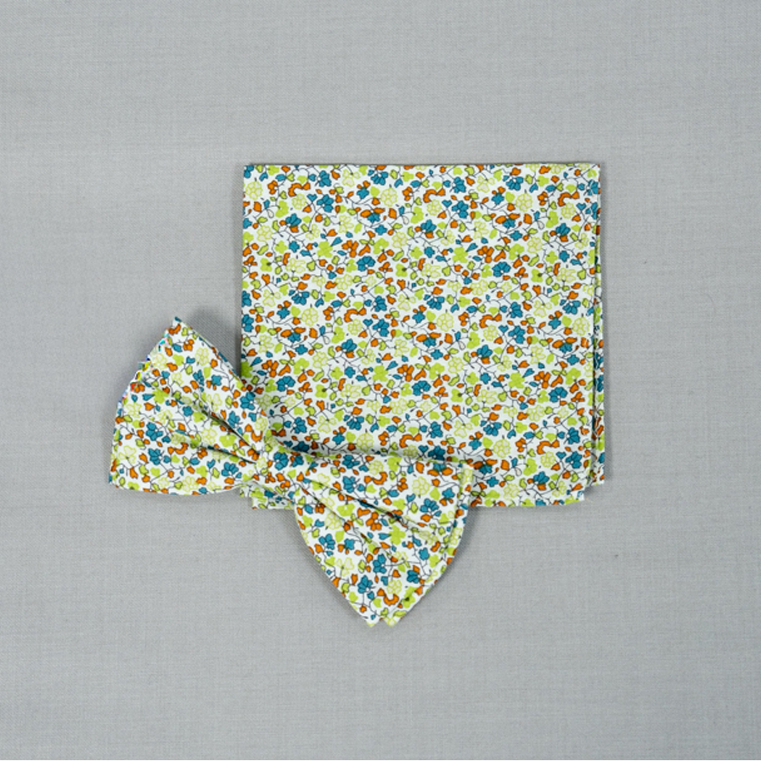 Fondo Blanco con Diseño de Hojas en Verde Limón, Naranja y Azul 100% Algodón
