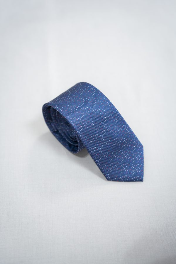 Clásica con un toque de color, esta corbata azul incorpora puntos en blanco y rojo que aportan contraste y dinamismo sin perder elegancia. Su diseño equilibrado la convierte en una pieza versátil para looks formales y ejecutivos. Confeccionada a mano en Italia en microfibra, ofrece una textura suave, excelente estructura y una caída impecable. Ideal para quienes buscan un detalle distintivo con estilo refinado.
